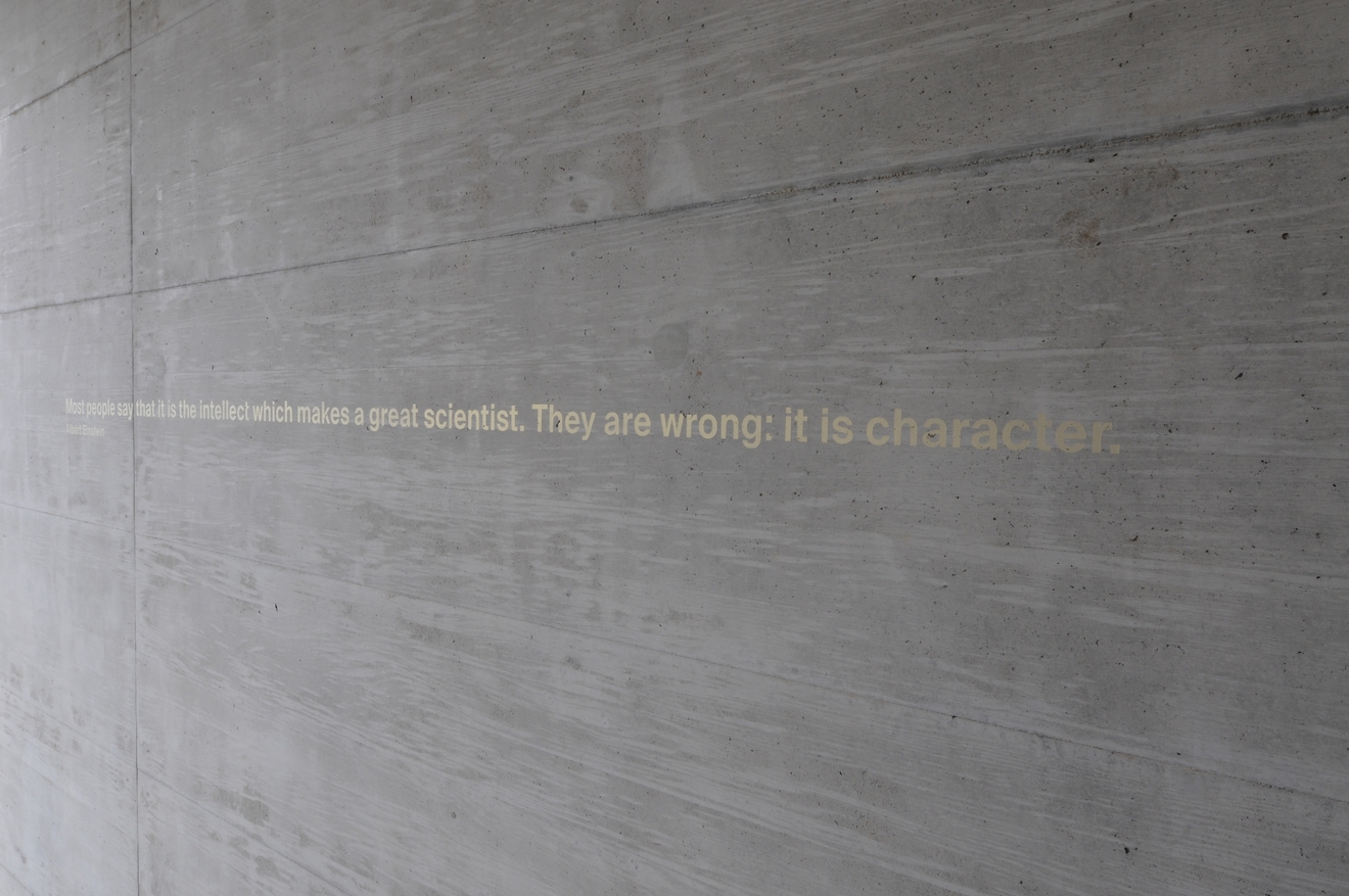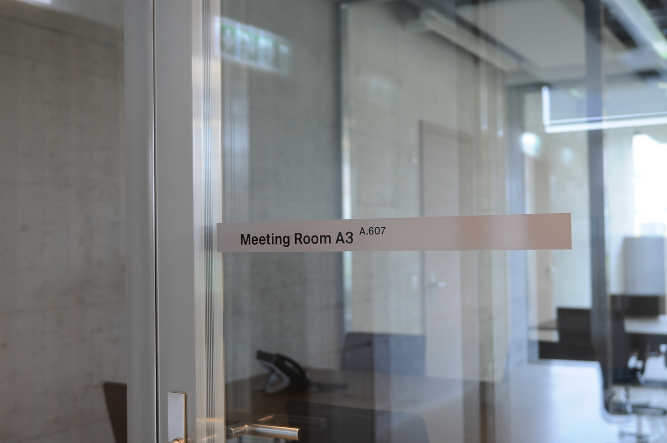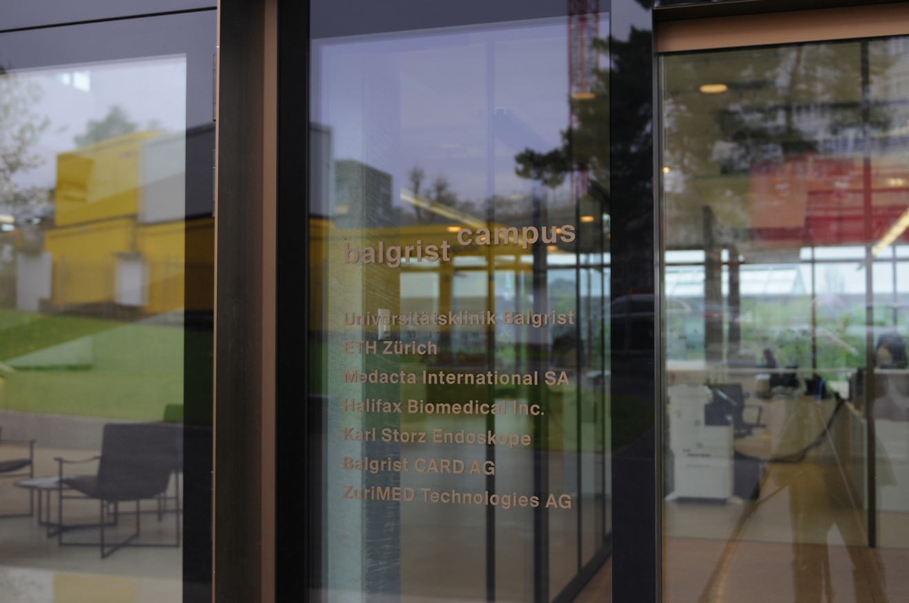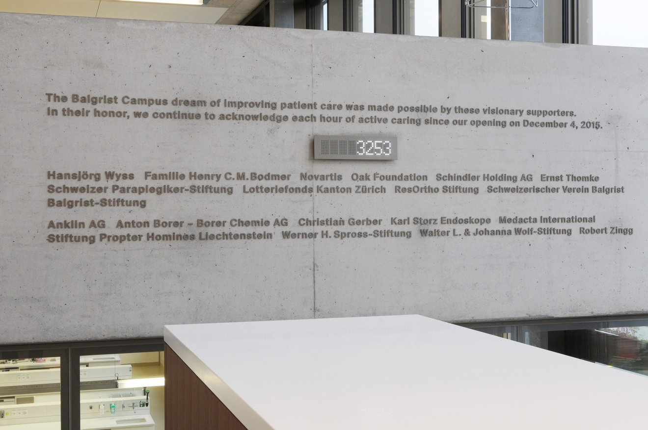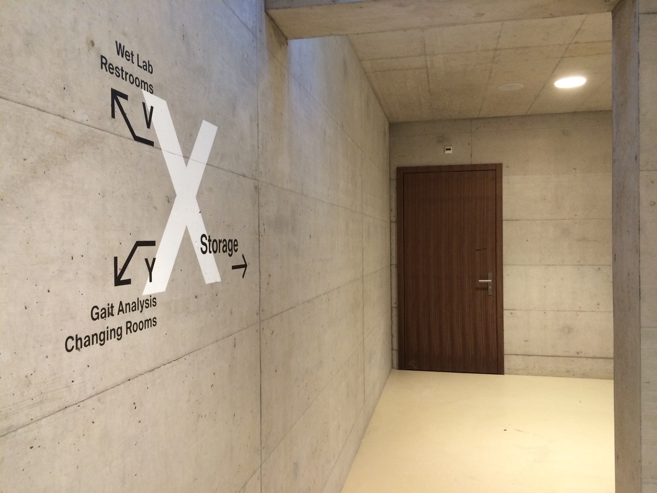 A research and development center for the advancement of musculoskeletal medicine, built by Basel architects Nissen Wentzlaff Architekten. With science, medicine and motion being the operative themes, our typographic solution (in Suisse Int’l Semi Bold) playfully references chemical formulas in guiding people to their destinations.