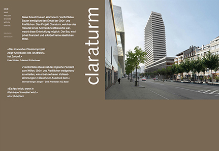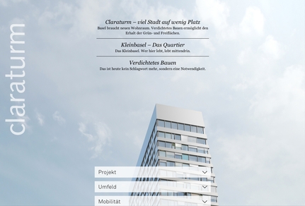 Vis-à-vis from the "Messeplatz Basel" buildings to be torn down will be replaced by a new highrise. We were asked by UBS Management Fond AG to collaborate on defining the name and developing the communications. The new name "Claraturm" honors the ancient neighborhood heritage.
