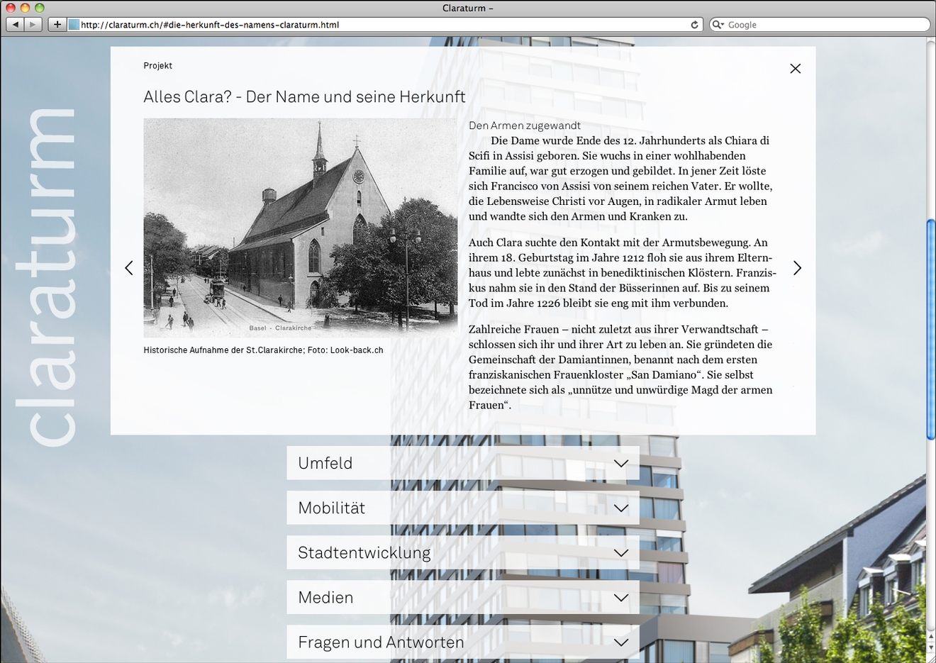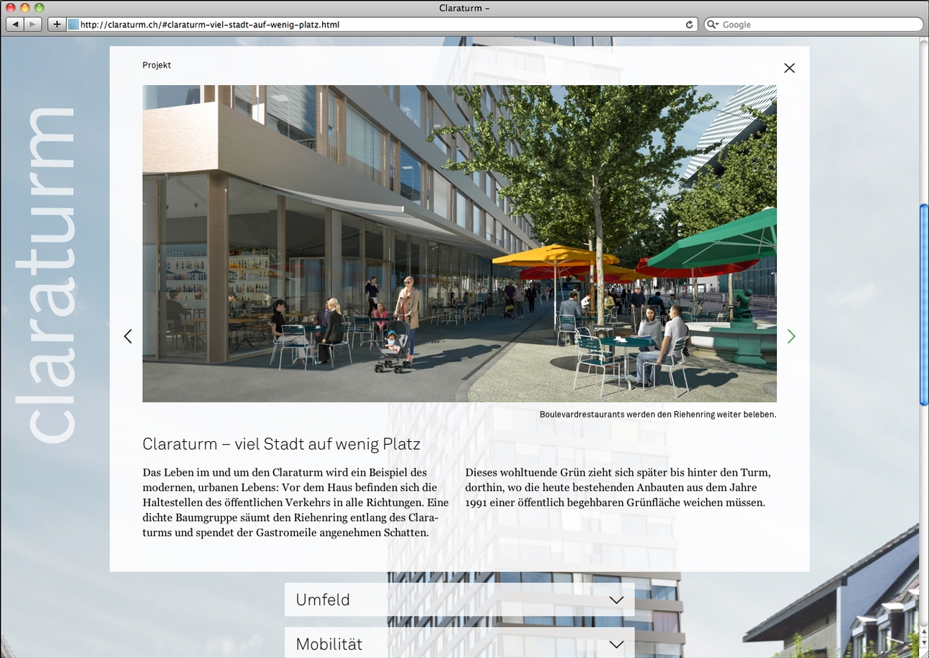 Parallax scrolling served the new highrise building website perfectly. There was controversy over whether a highrise should be built at all; the project website showed to lovely effect the airy pleasure of looking skyward up at the building.