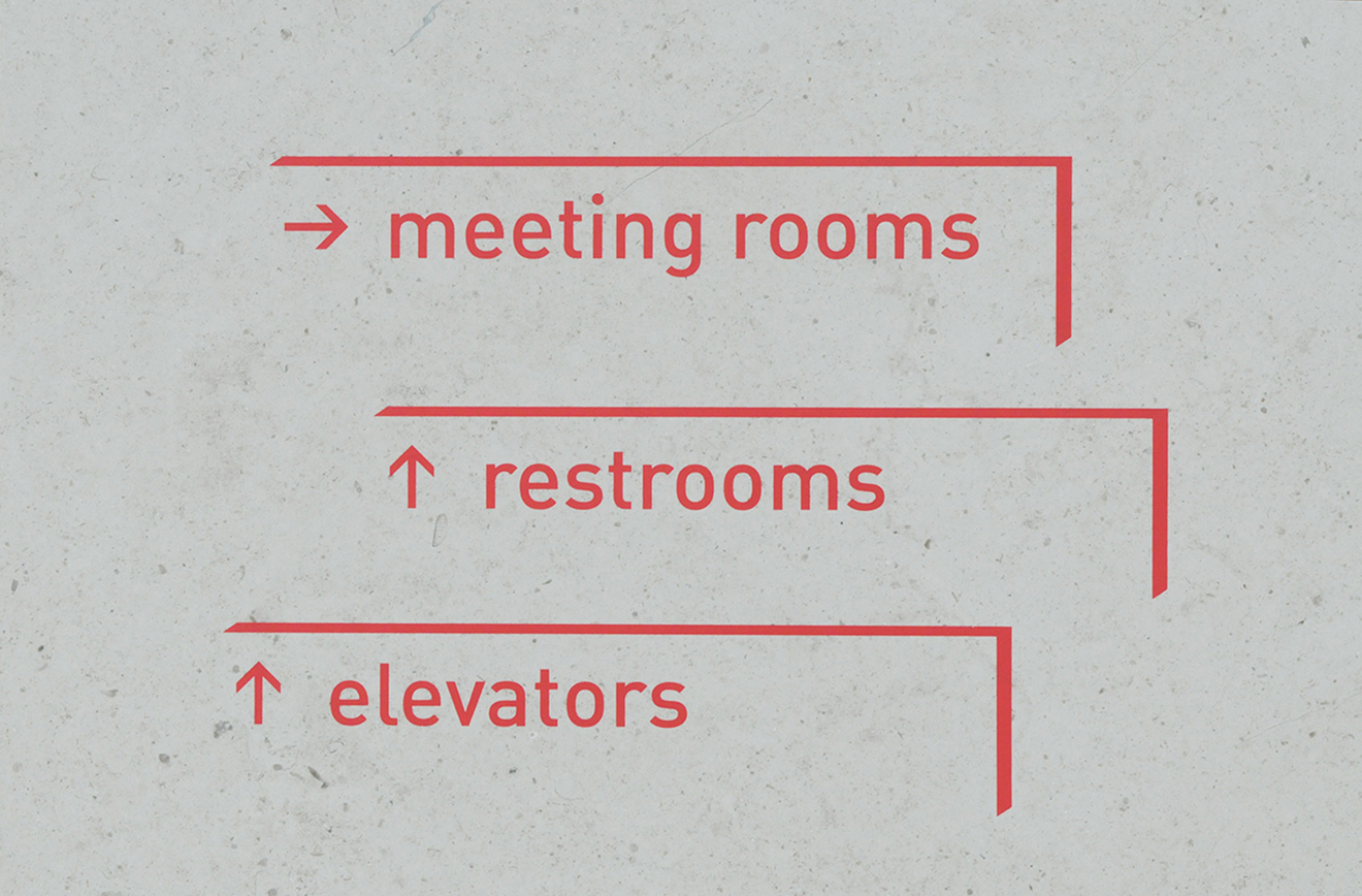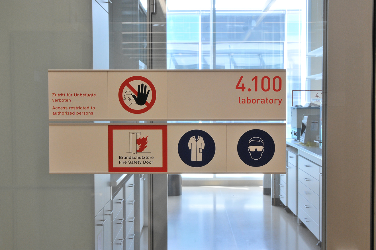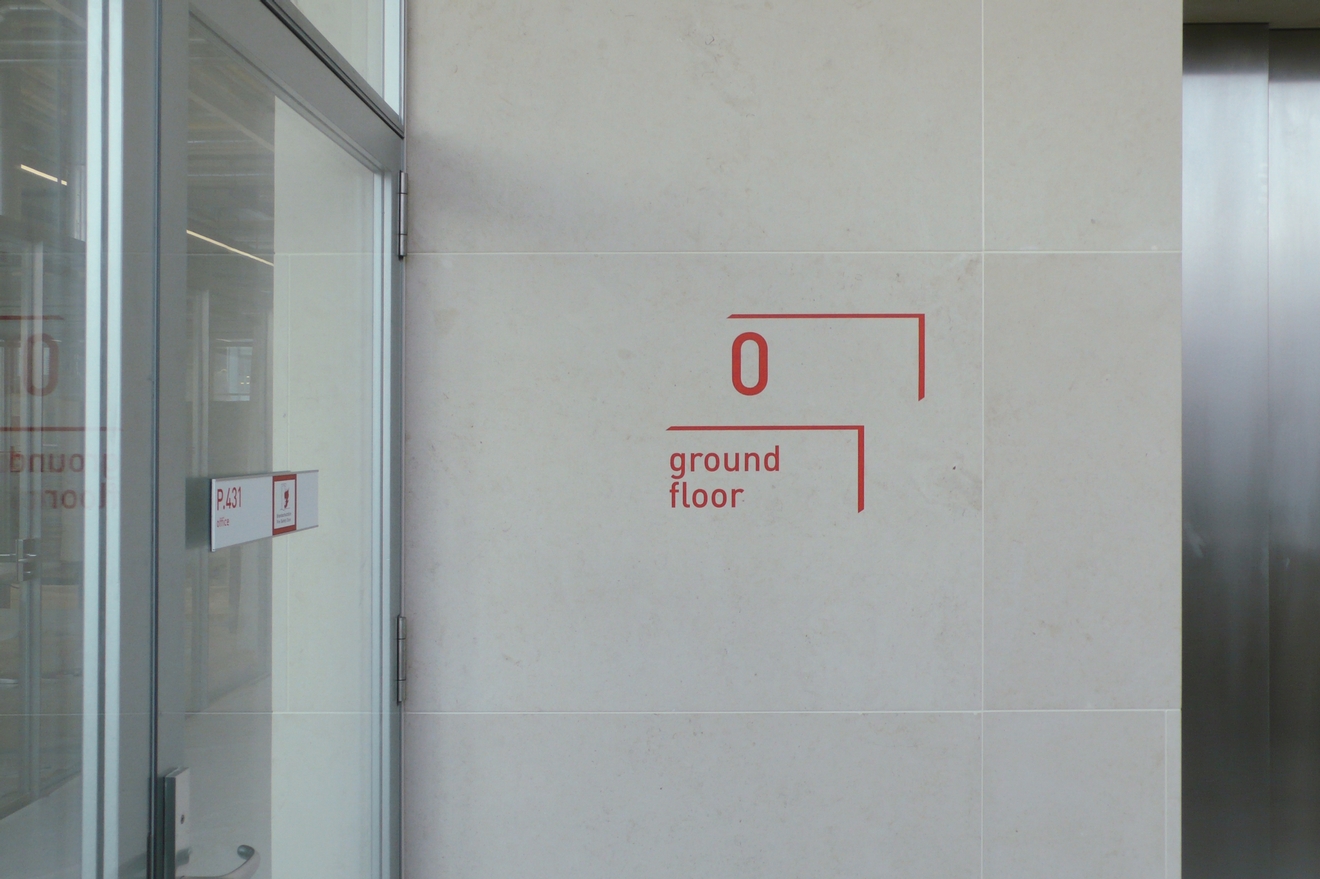 Not a trace of banal conventionality appears in Siza’s elegant new laboratory building so to echo the abandonment of the conventional and predictable, rectangular shadows of standard wall signage remain – in bright red. Normally hidden technical infrastructure was left exposed above the elegant, understated workplace environment. The red-alert color contrasts the monochrome interior while matching the exposed ceiling.