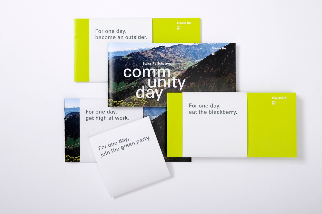 Swiss Re encourages its employees to spend one of their working days each year participating in and supporting a charity. Many of these charities involve outdoor work like maintaining a Swiss alp or moor, thus giving us the chance to write some amusing headlines to promote the effort. How many people get to tell Swiss Re employees to get high at work, and eat the blackberry?